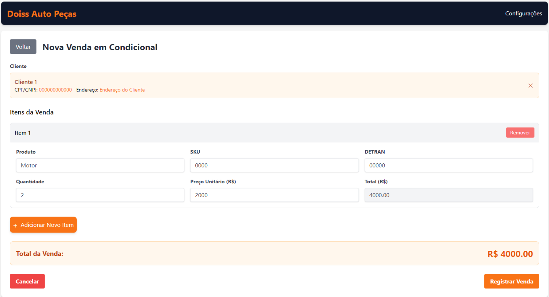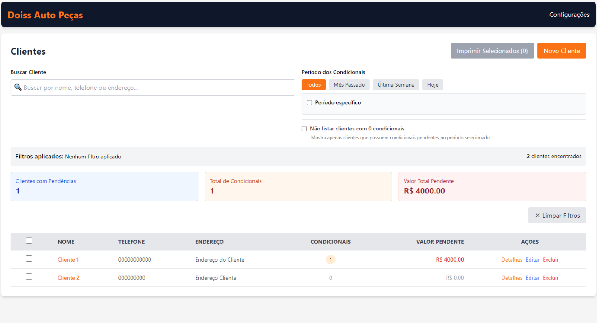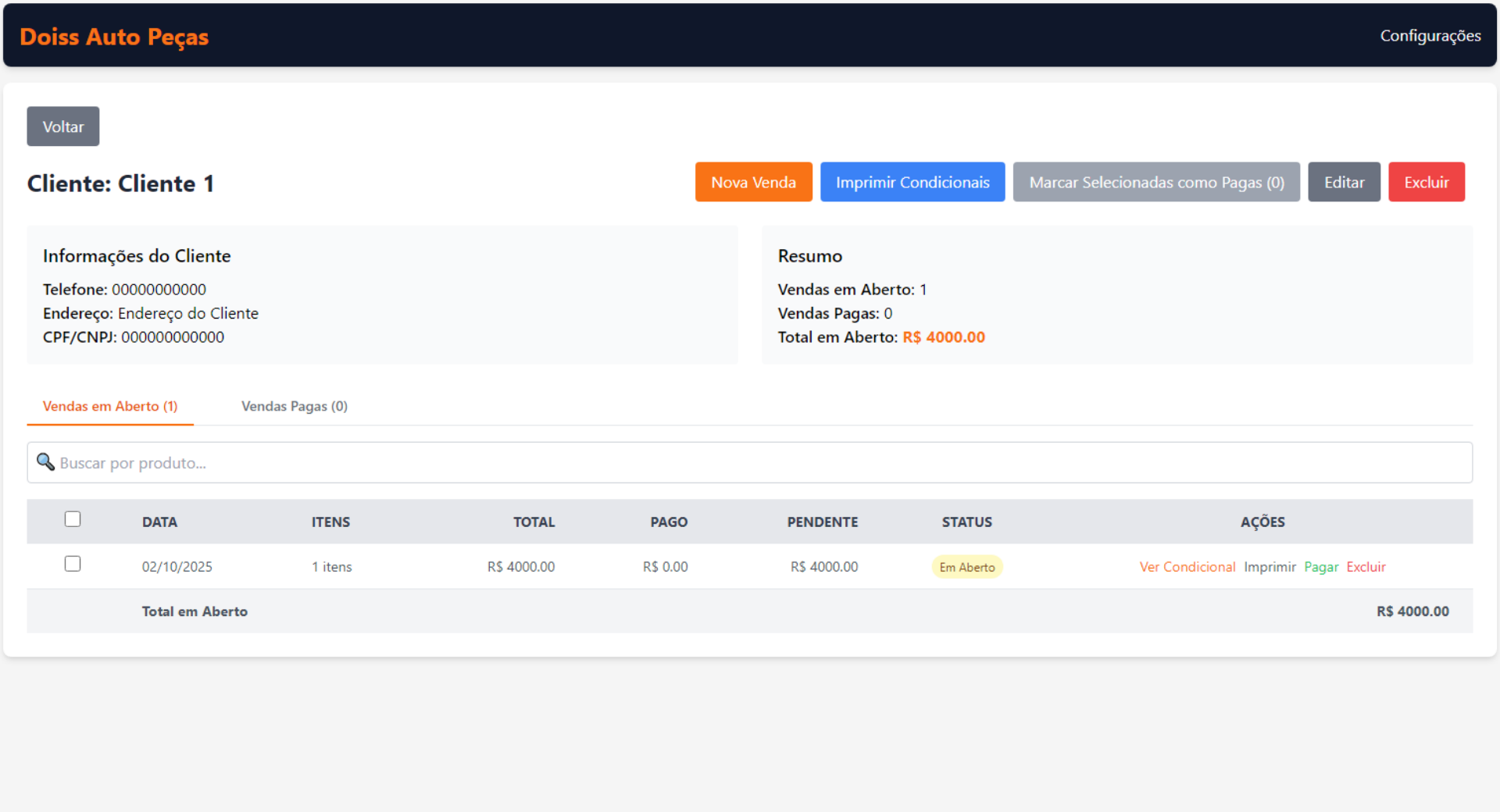 - Cliente pré-selecionado automaticamente