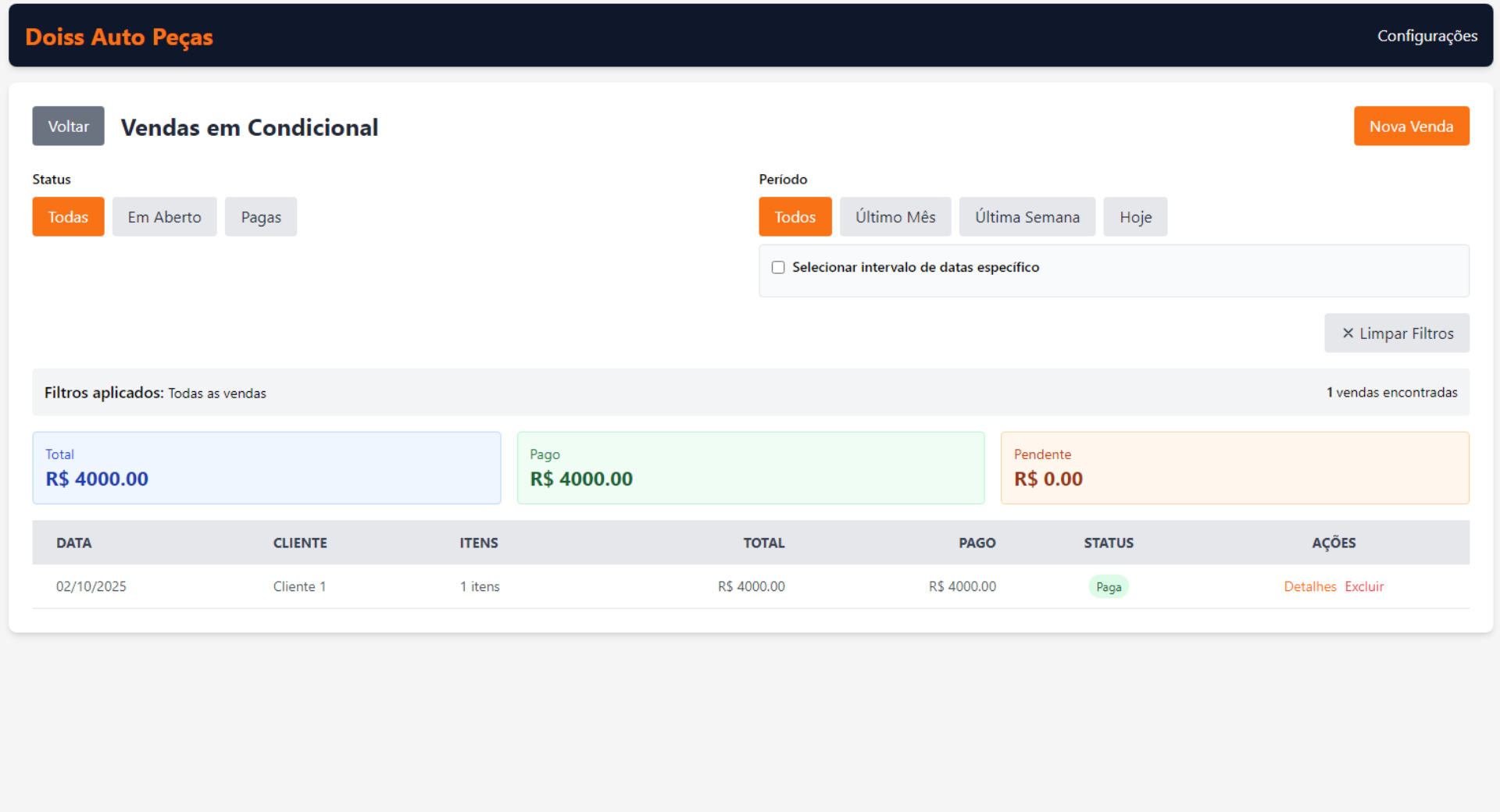 Sistema de Vendas Condicionais